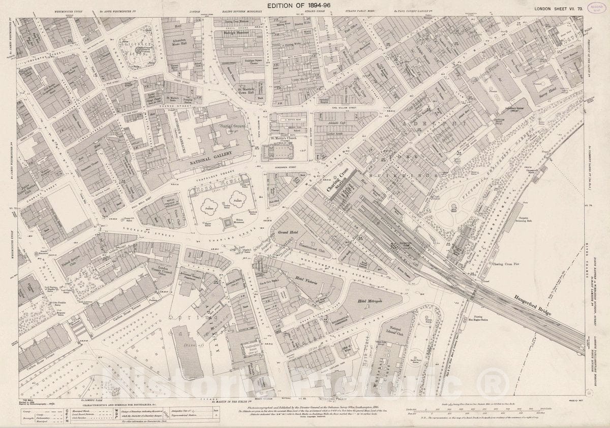 Historic Map : Ordnance Survey Maps, London, Five feet to The Mile. London Sheet VII.73, 1895 City Atlas - Vintage Wall Art