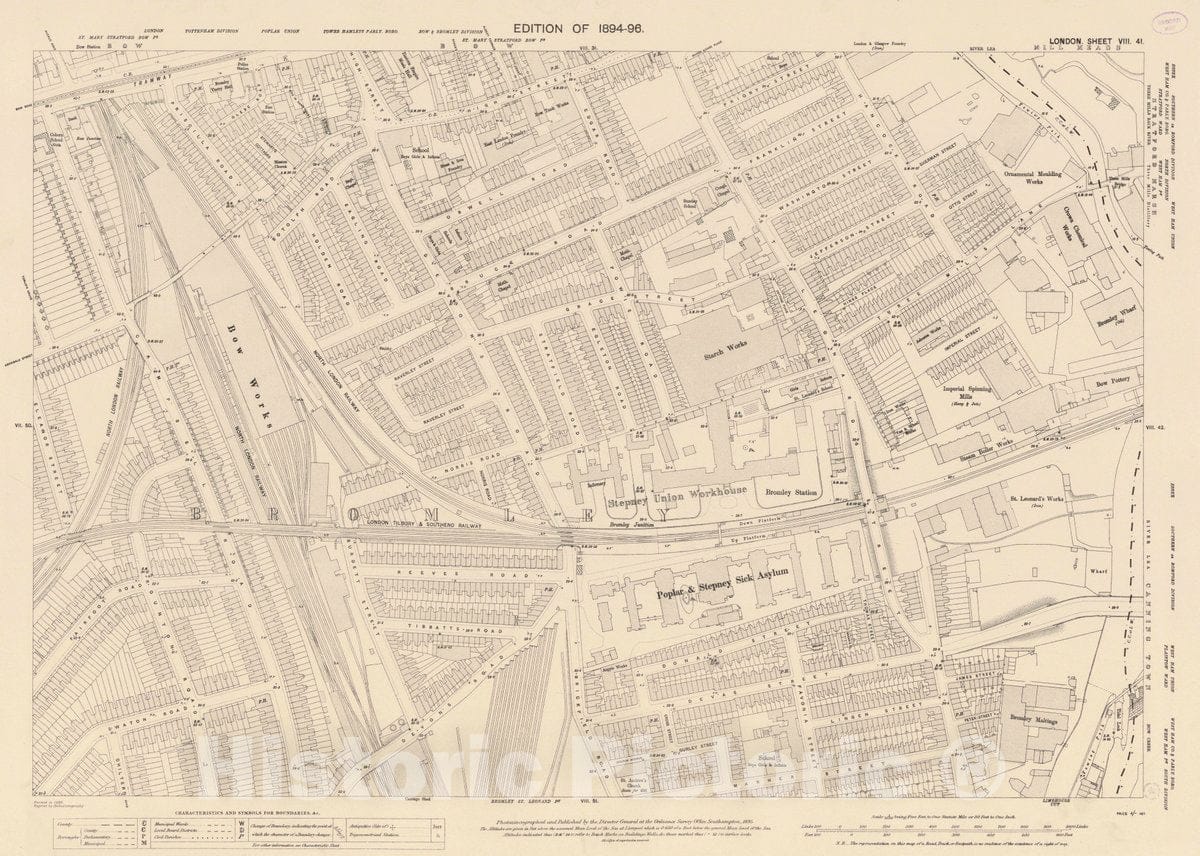 Historic Map : Ordnance Survey Maps, London, Five feet to The Mile. London Sheet VIII.41, 1895 City Atlas - Vintage Wall Art