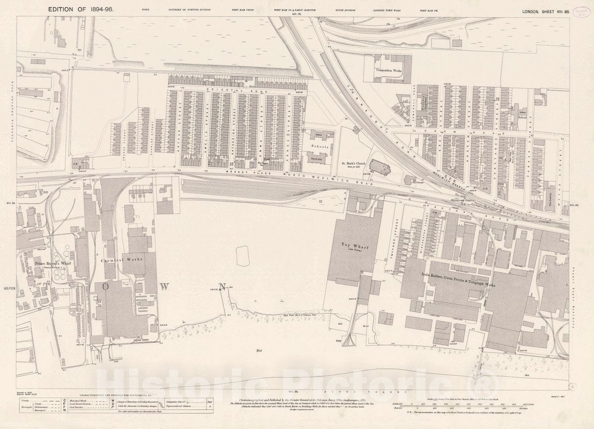 Historic Map : Ordnance Survey Maps, London, Five feet to The Mile. London Sheet VIII.85, 1895 City Atlas - Vintage Wall Art