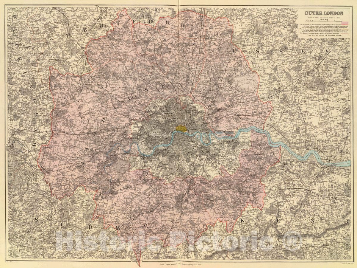 Historic Map : Outer London. London atlas series. Stanford's Geogl. Establish. London : Edward Stanford, 26 & 27 Cockspur St, Charing Cross, S.W. (1901), 1901 AtlasVintage Wall Art