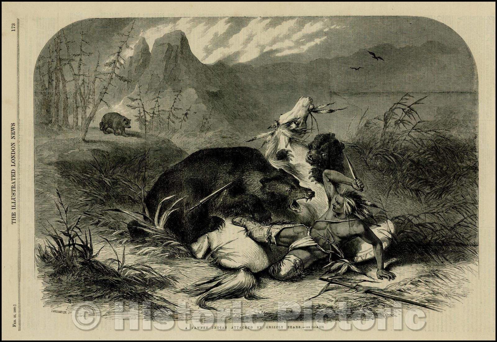 Historic Map - A Pawnee Indian Attacked, 1860, Illustrated London News - Vintage Wall Art