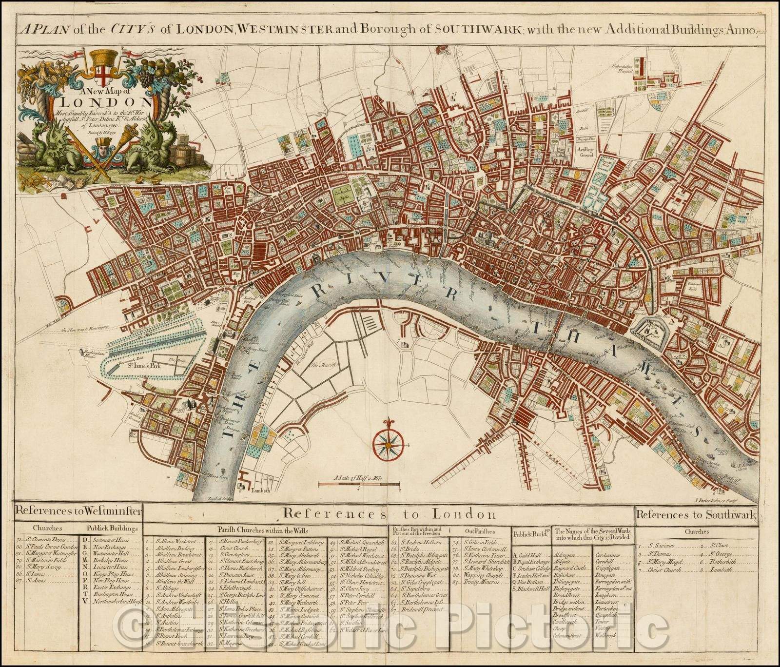 Historic Map - A Plan of the City's Of London, Westminser and Borough of Southwark; with the new Additional Buildings, 1721, John Senex v2