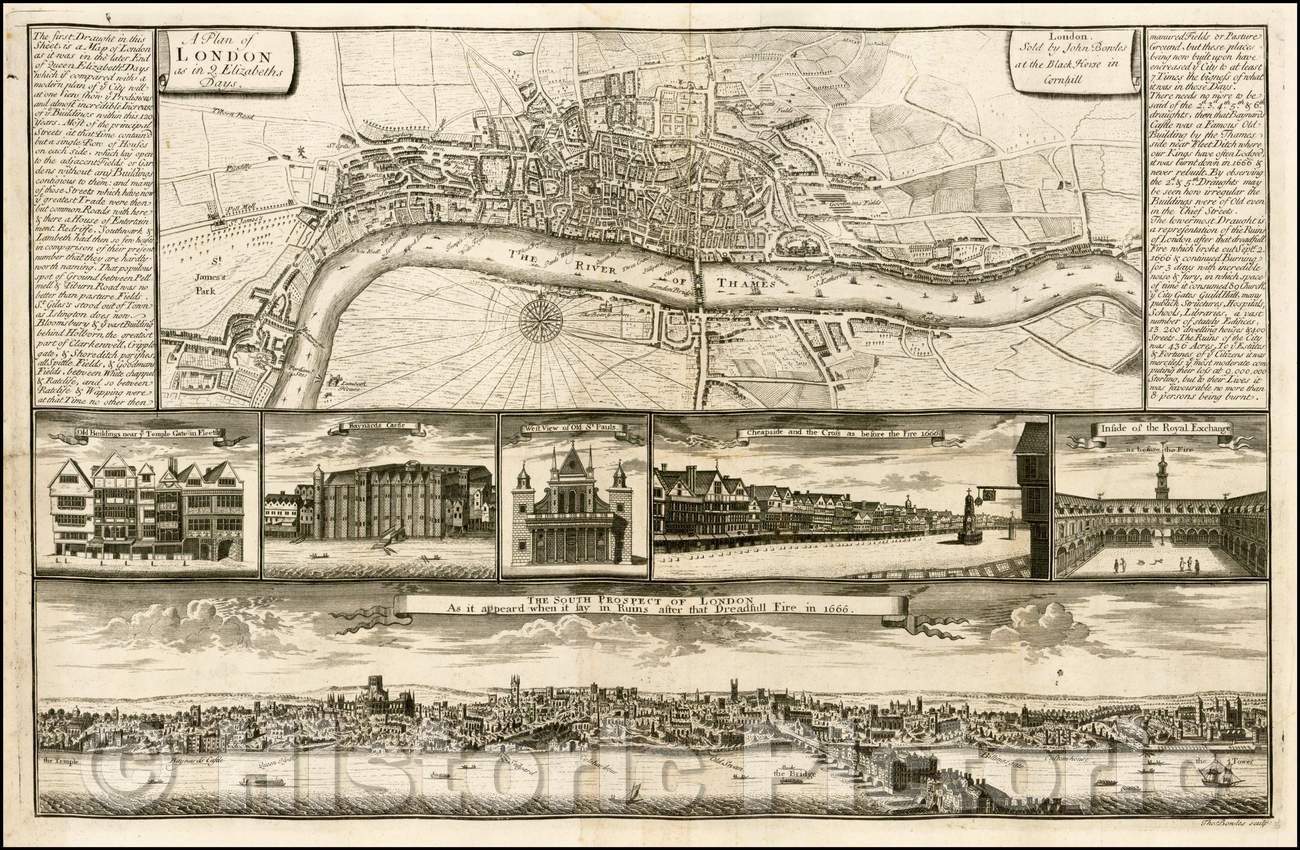 Historic Map - A Plan of London as in Q. Elizabeths Days, 1723, Thomas Bowles - Vintage Wall Art