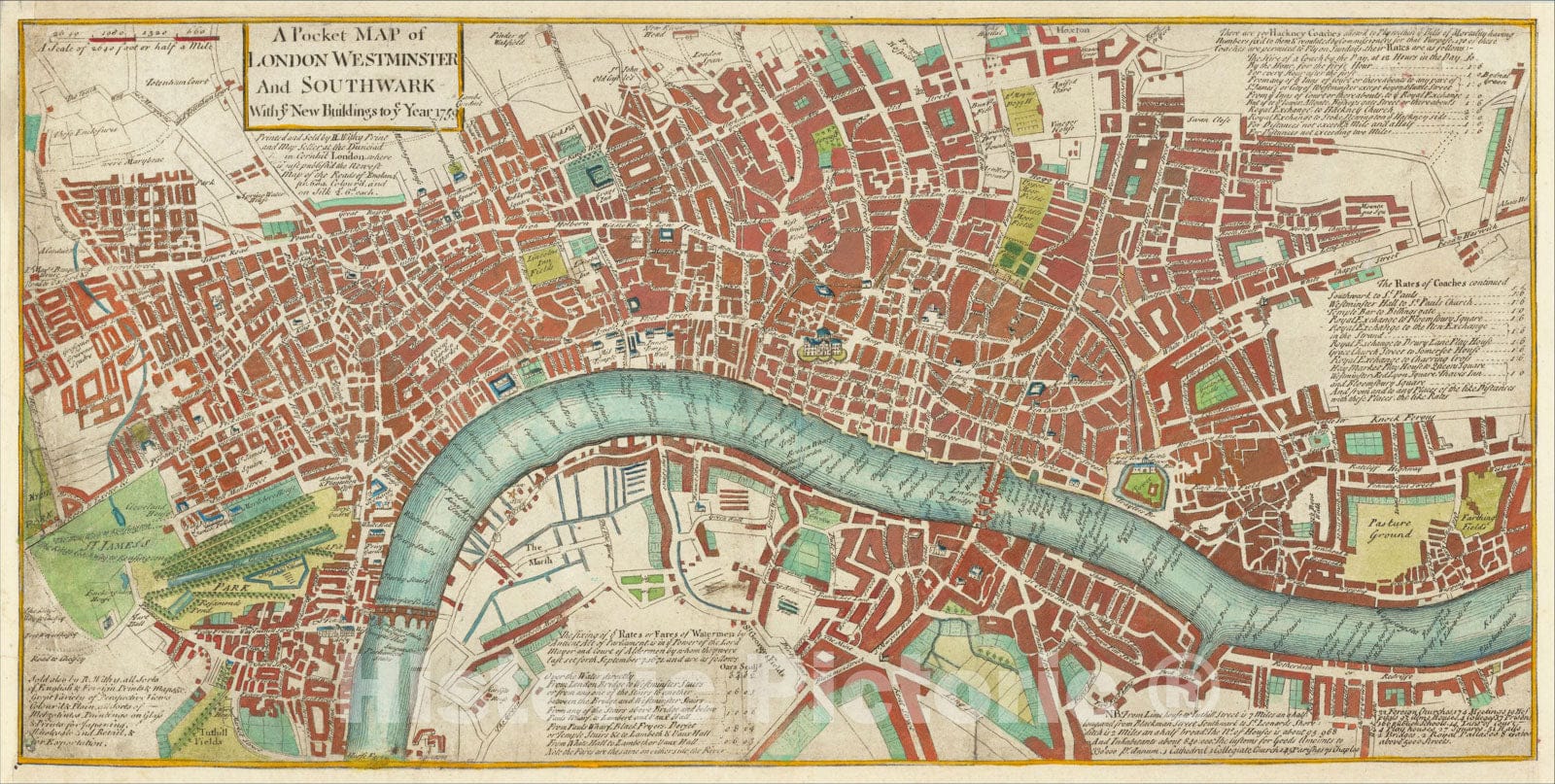 A Pocket Map of London Westminster and Southwark With ye New Buildings to ye Year 1759., 1759, Robert Withy