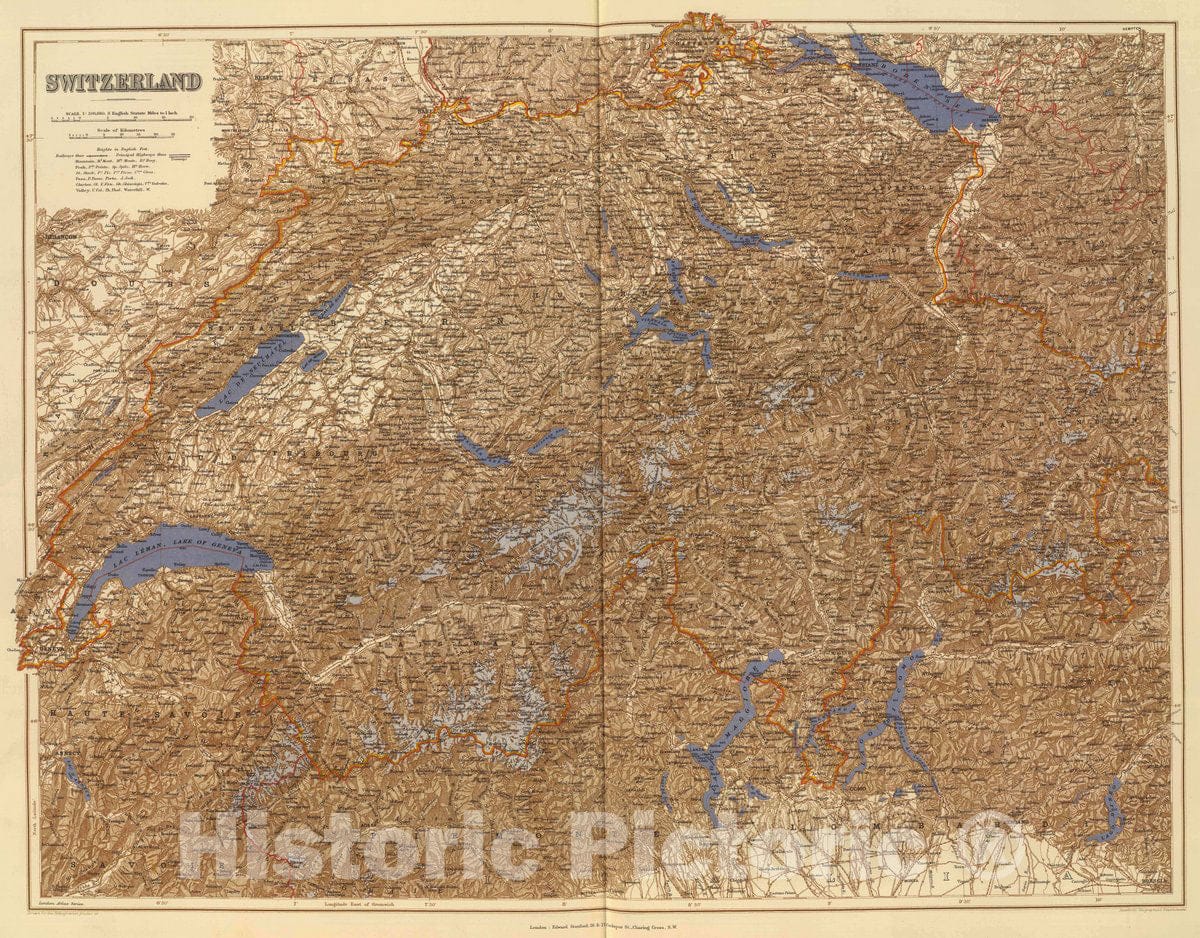 Historic Map : Switzerland. London series. Drawn for the heliogravure process at Stanford's Geographical Establishment. London : Edward Stanford, 26 & 27, Cock, 1901Vintage Wall Art