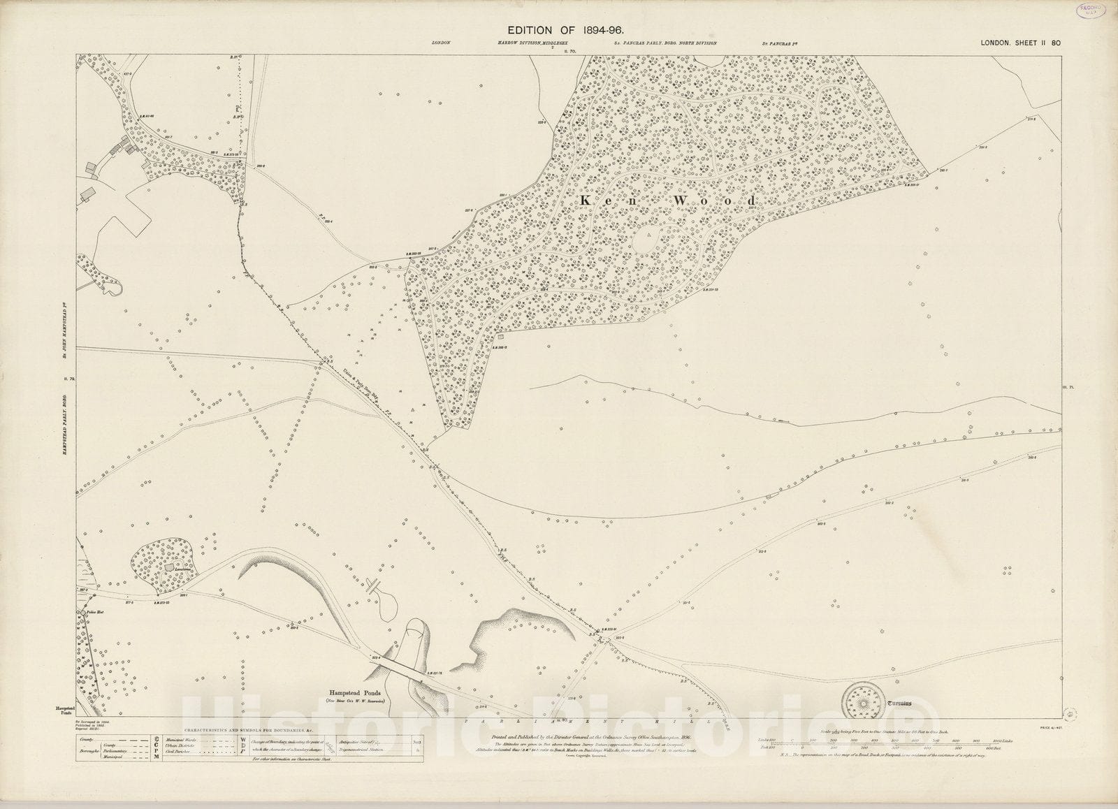 London Sheet II.80 | Ordnance Survey Maps, London, Five feet to the Mile. | The Pub Date of 1896 is latest date of the publication dates of the London, Five feet to the Mile maps, 1893 to 1896. The Date field date is the actual publication date of each sheet.