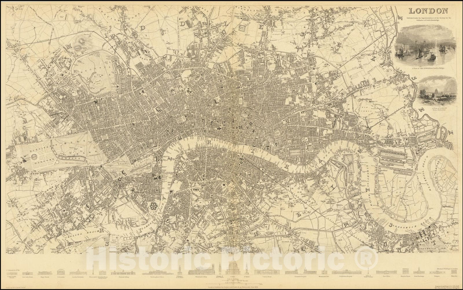 Historic Map : London , Rare First Edition, 1836, Vintage Wall Art