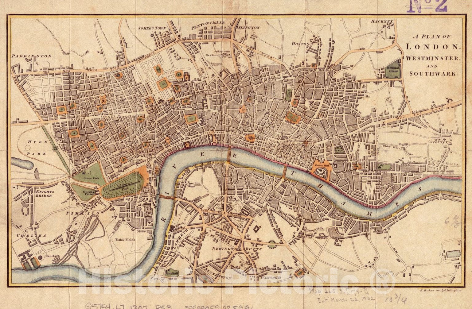 Historical Map, 1807 A Plan of London, Westminster, and Southwark, Vintage Wall Art