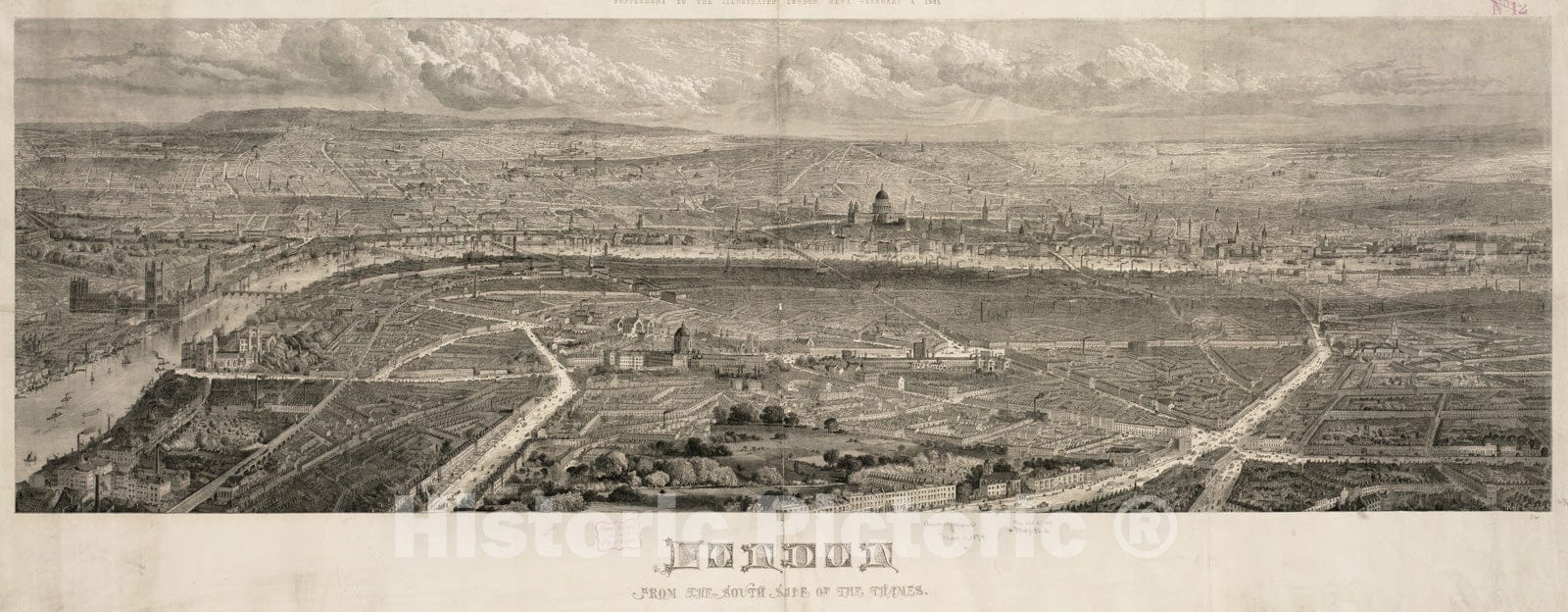 • .Historical Map, 1861 London from The South Side of The Thames, Vintage Wall Art