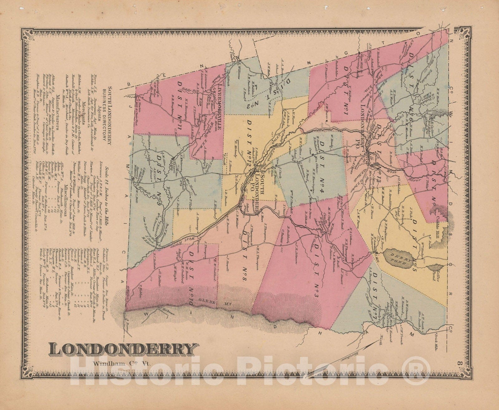Historic Map : Atlas of Windham County, VT, Londonderry 1869 , v2, Vintage Wall Art