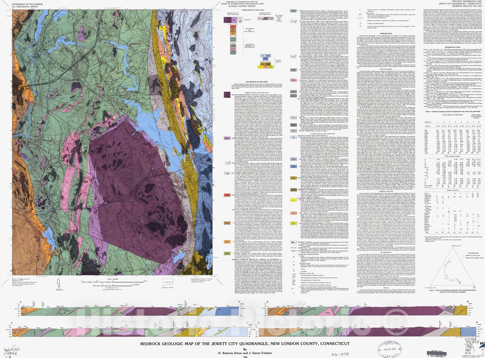 Map : Bedrock geologic map of the Jewett City quadrangle, New London, Connecticut, 1986 Cartography Wall Art :