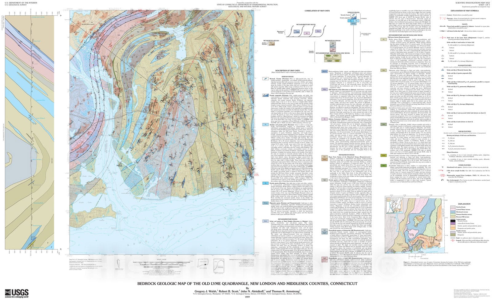 Map : Bedrock geologic map of the Old Lyme quadrangle, New London and Middlesex Counties, Connecticut, 2009 Cartography Wall Art :
