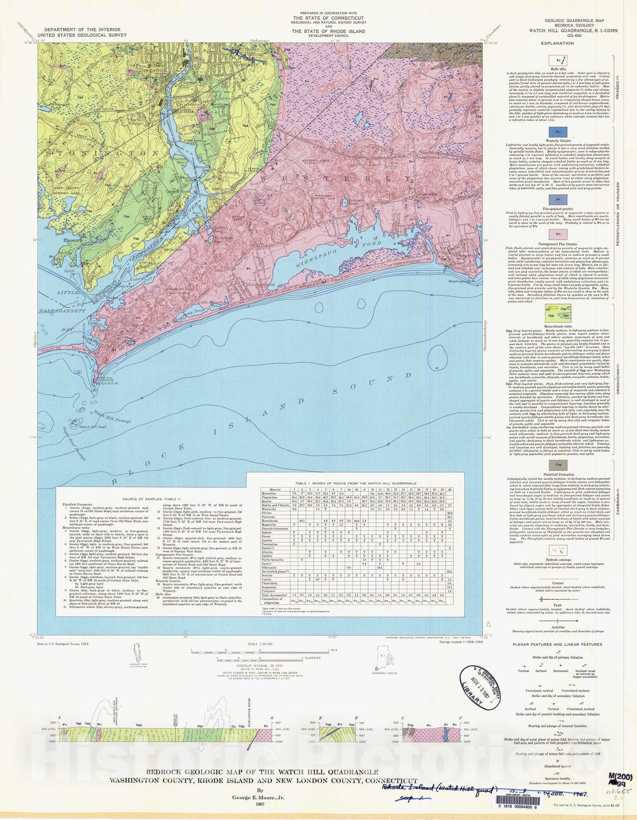 Map : Bedrock geologic map of the Watch Hill quadrangle, Washington County, Rhode Island and New London County, Connecticut, 1967 Cartography Wall Art :