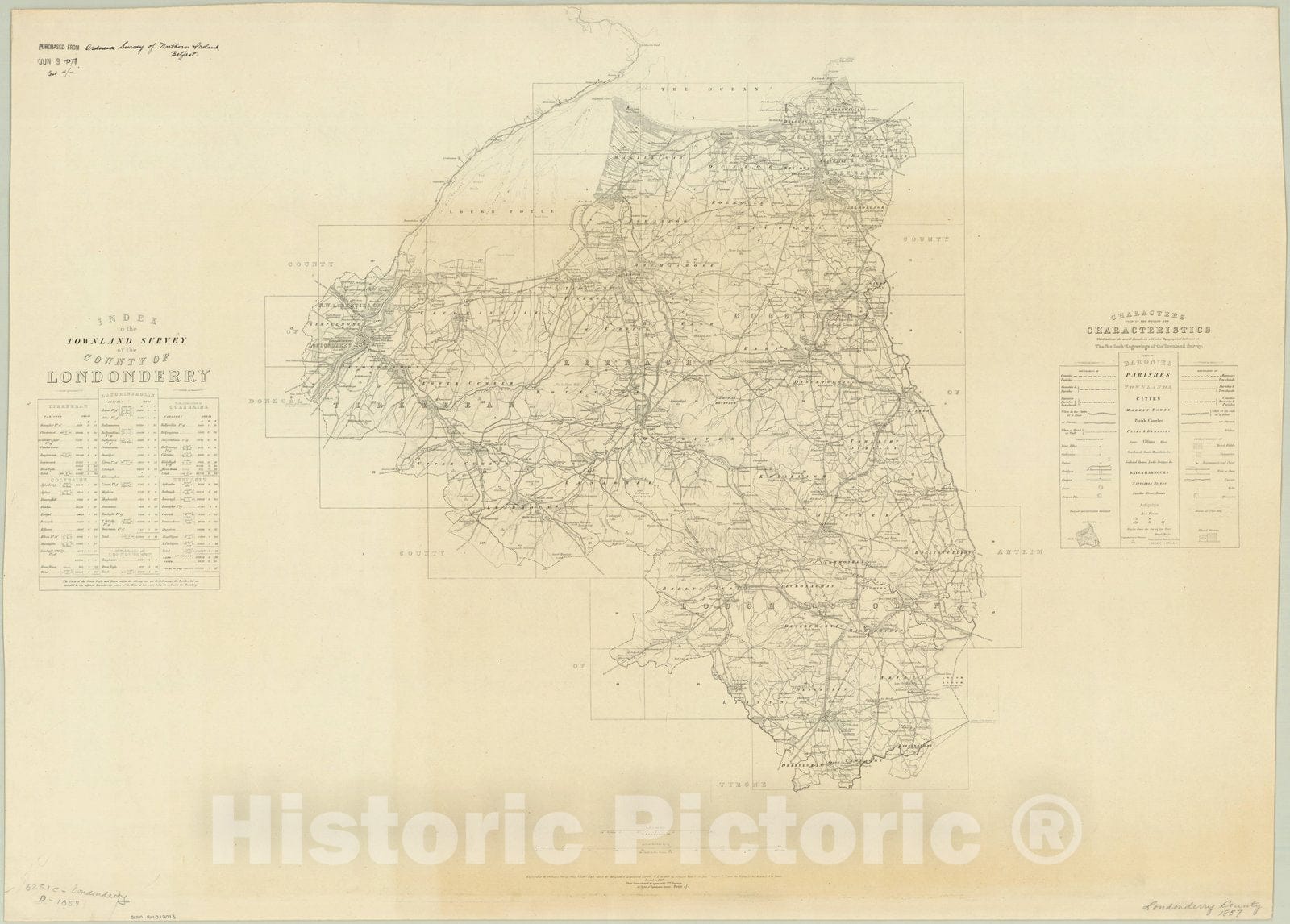 Map : County of Londonderry, Northern Ireland 1857, Index to the Townland Survey of the County of Londonderry , Antique Vintage Reproduction