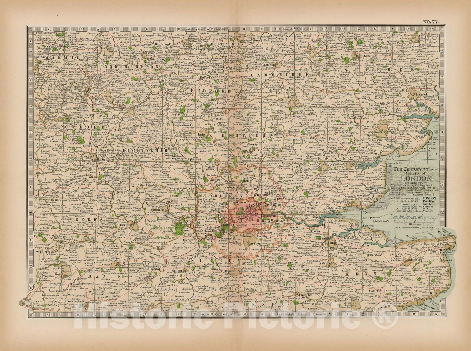 • .Historic Map : London 1897 Plate 077 , The Century Atlas World , Vintage Wall Art