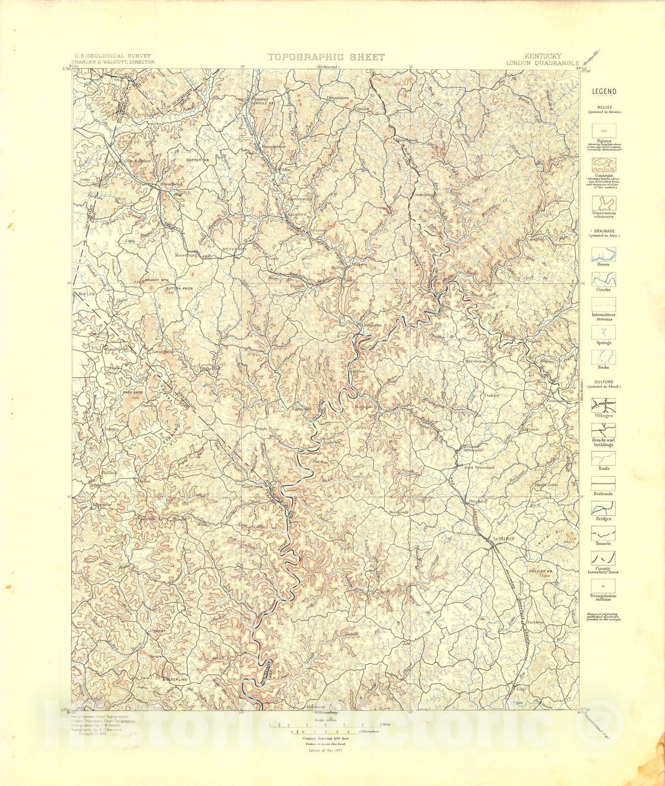 Map : London folio, Kentucky, 1898 Cartography Wall Art :