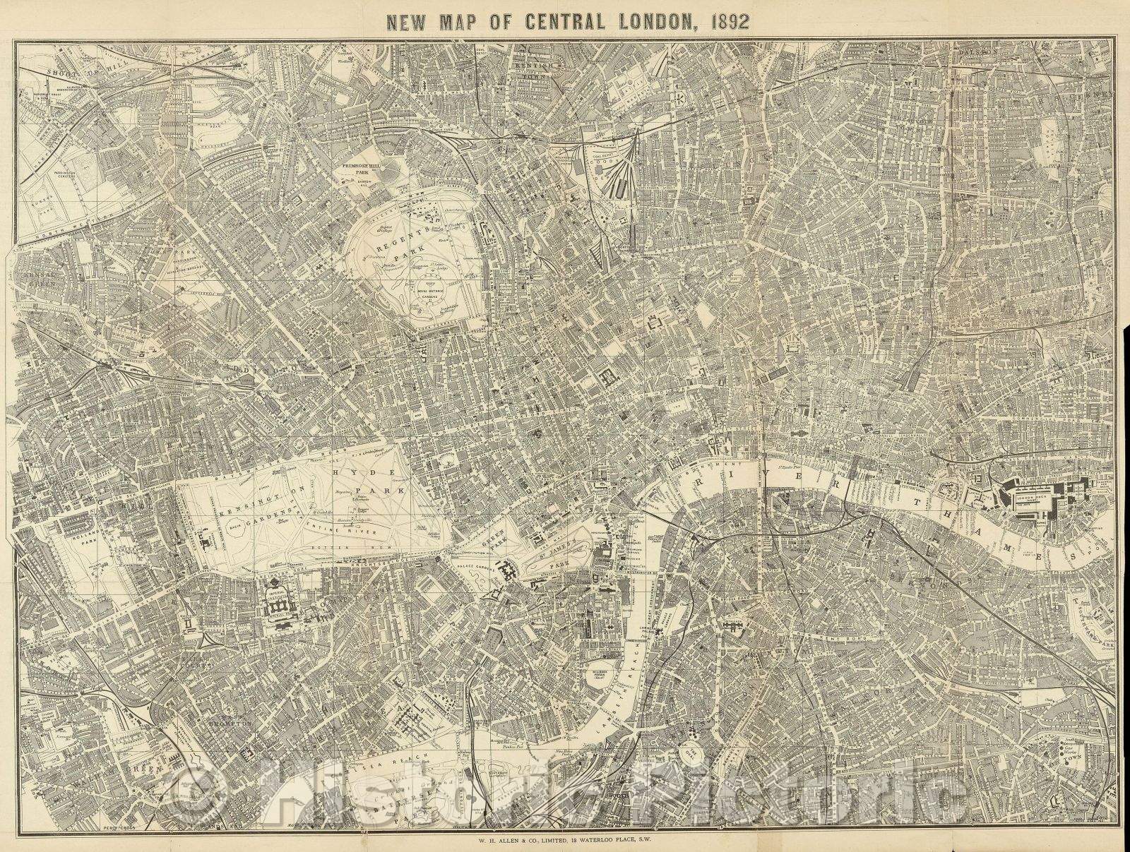 • .Historic Map : New Map of Central London, 1892, 1892 , Vintage Wall Art