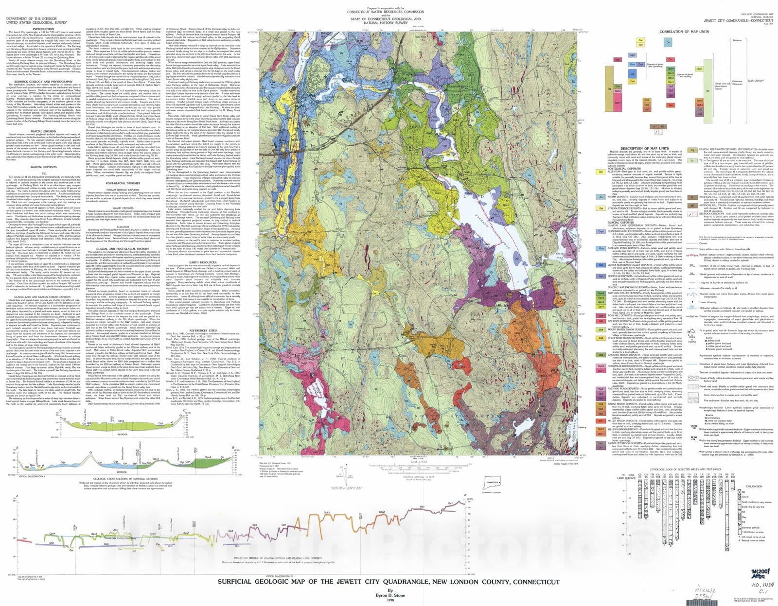 Map : Surficial geologic map of the Jewett City quadrangle, New London County, Connecticut, 1978 Cartography Wall Art :