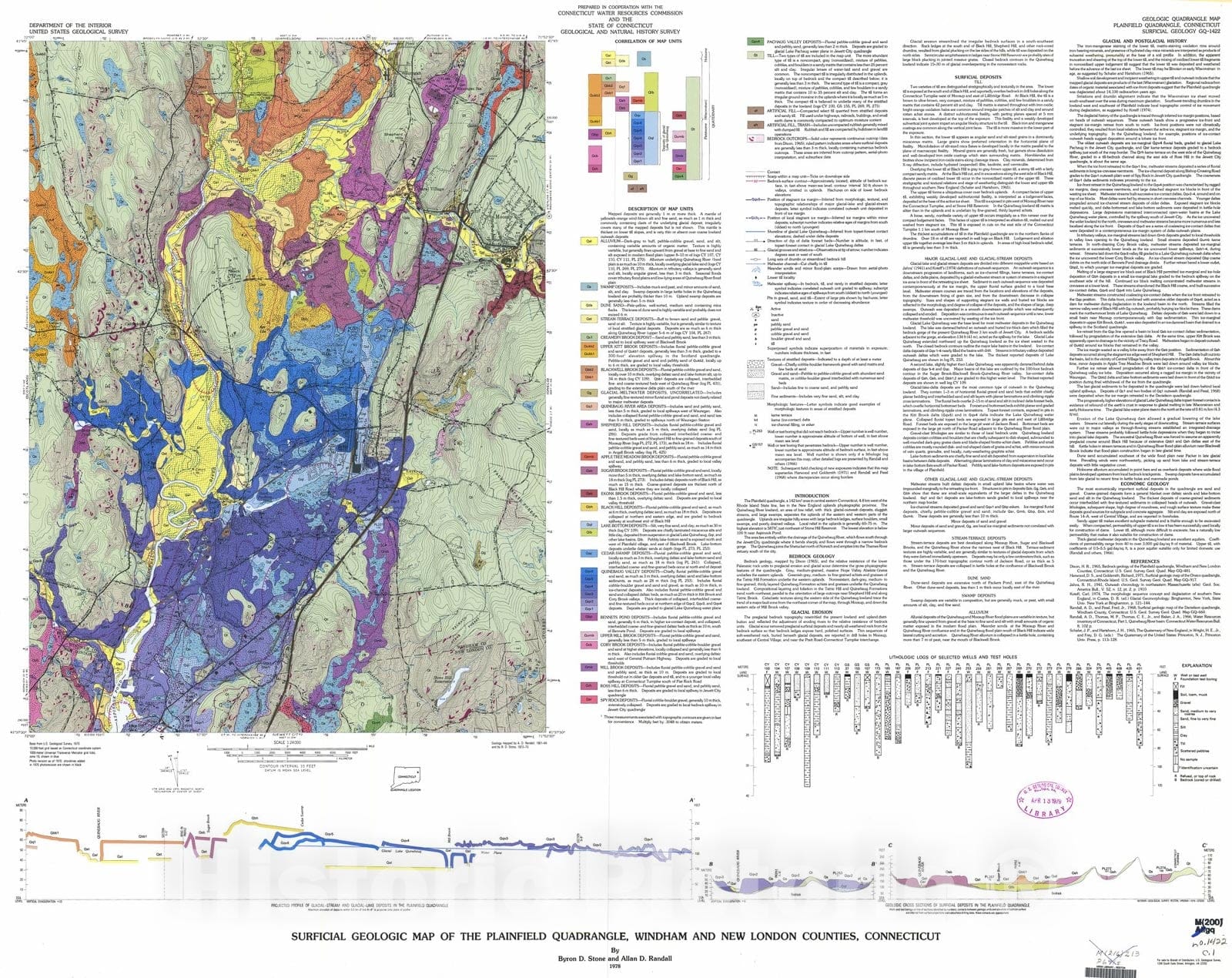 Map : Surficial geologic map of the Plainfield quadrangle, Windham and New London Counties, Connecticut, 1977 Cartography Wall Art :