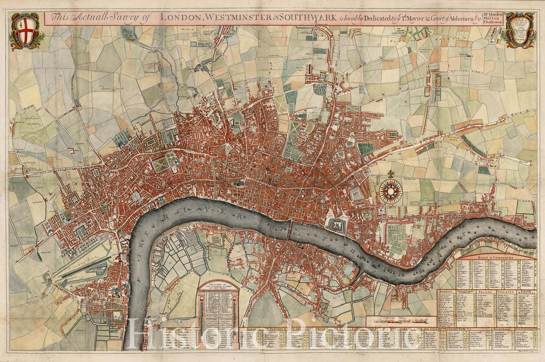 Historic Map - This Actuall Survey of London, Westminster & Southwark is, 1700, Robert Morden - Vintage Wall Art