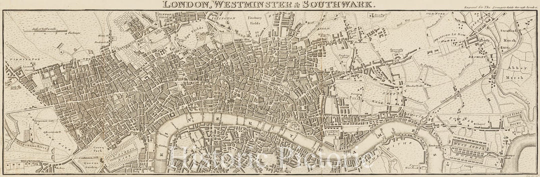 Historic Map : London, Westminster and Southwark, 1808, James Cundee, Vintage Wall Art