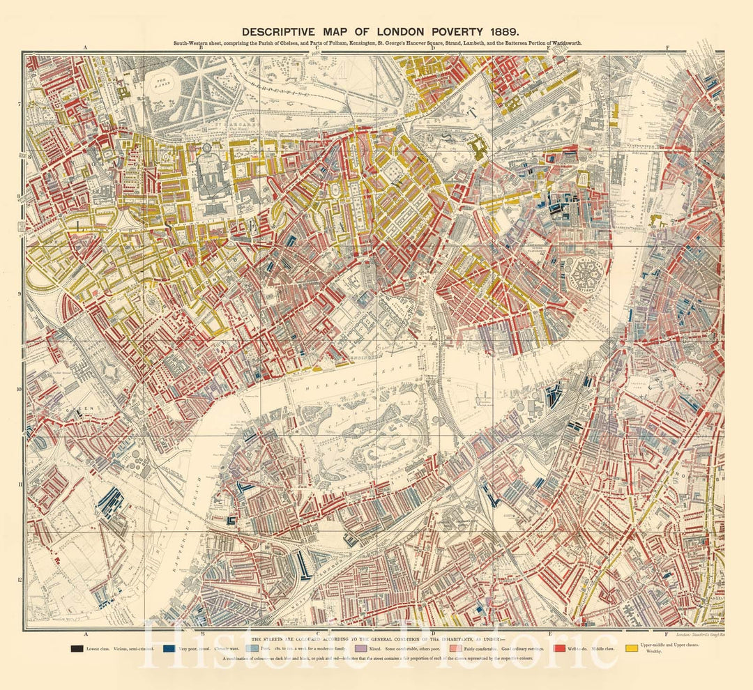 Historic Map : Descriptive map of London poverty. South-Western sheet, 1889 - Vintage Wall Art