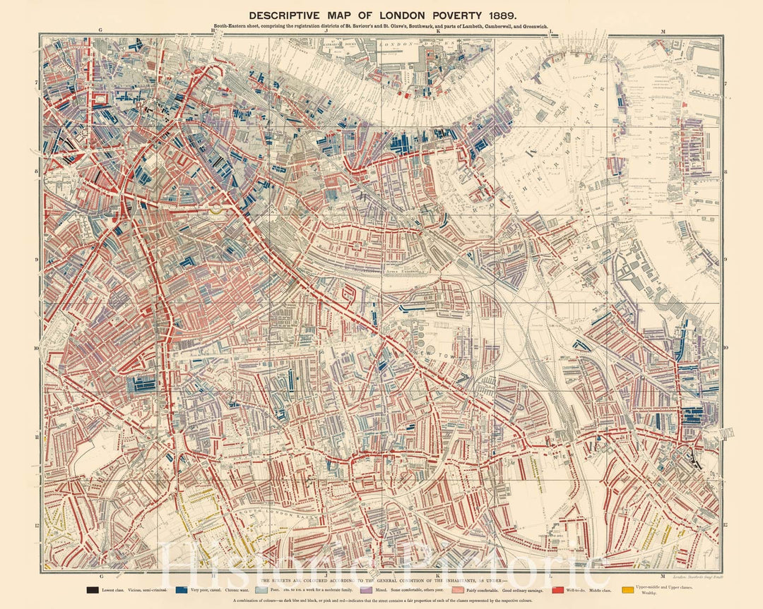 Historic Map : Descriptive map of London poverty. South-Eastern sheet, 1889 - Vintage Wall Art