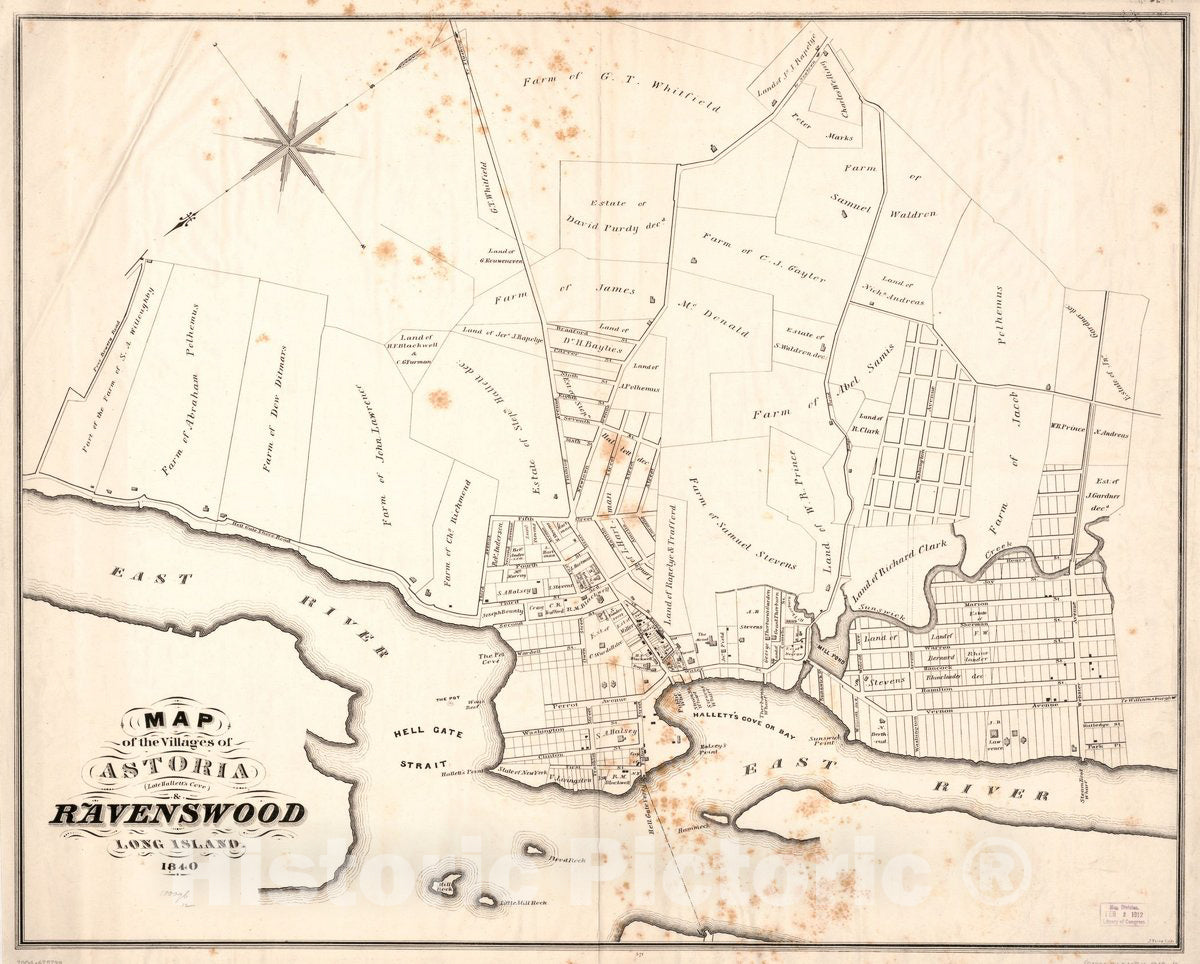Historic 1840 Map - Map of The Villages of Astoria (Late Hallett's Cove) & Ravenswood, Long Island.