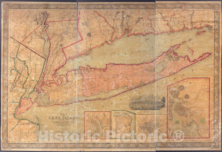 • .Historic 1847 Map - Map Of Long Island With The Environs Of New-York And The Souther - Vintage Wall Art