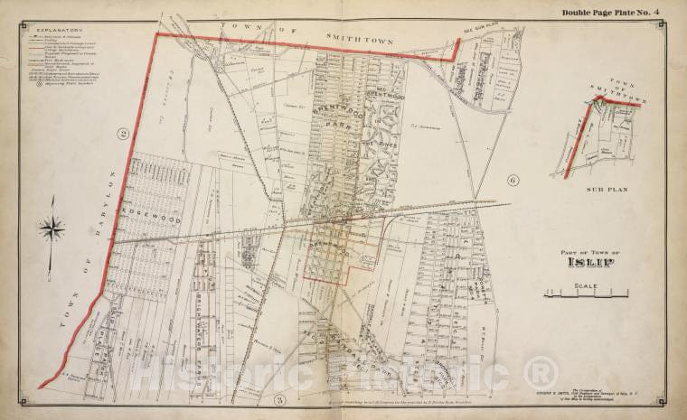 • .Historic 1915 Map - Part Of Town Of Islip - Suffolk County (N.Y.Atlas Of Suffolk County, Long Island, New York - Vintage Wall Art, V2