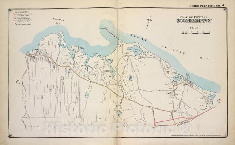 • .Historic 1915 Map - Part Of Town Of Southampton - Suffolk County (N.Y.Atlas Of Suffolk County, Long Island, New York - Vintage Wall Art, V4