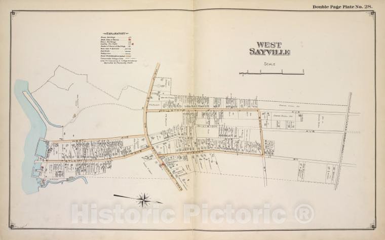 • .Historic 1915 Map - West Sayville - Suffolk County (N.Y.Atlas Of Suffolk County, Long Island, New York - Vintage Wall Art
