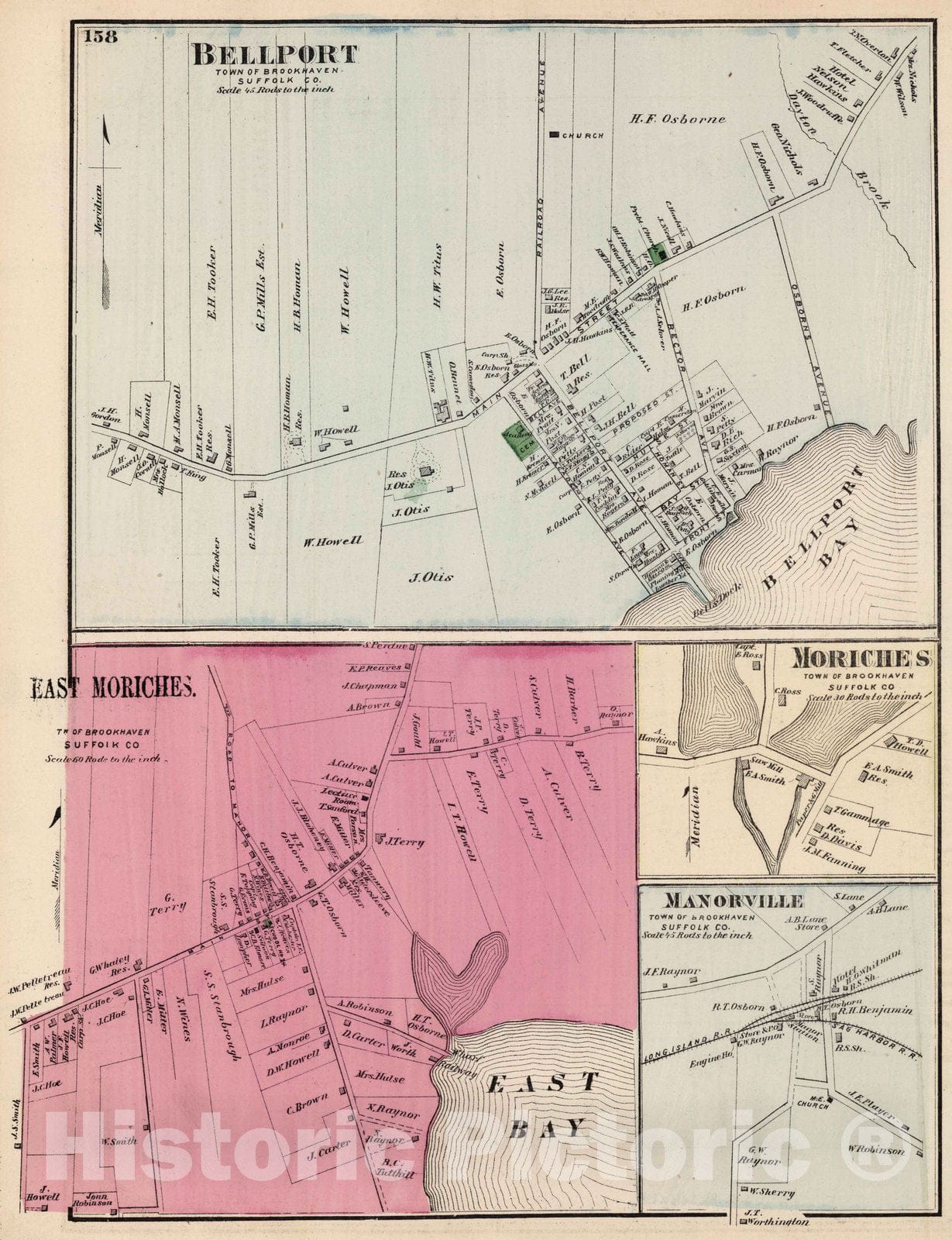 1873 Bellport, East Moriches, Moriches, Manorville, in Brookhaven. Long Island.