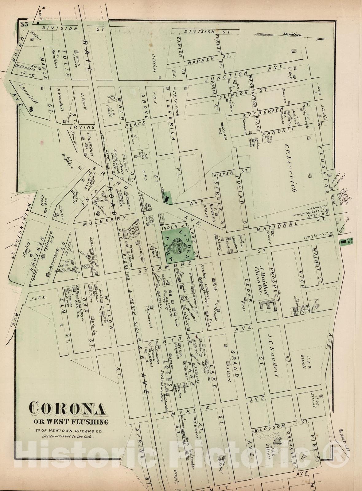 • .Historic Map : 1873 Corona or West Flushing, in Newtown. Long Island. - Vintage Wall Art