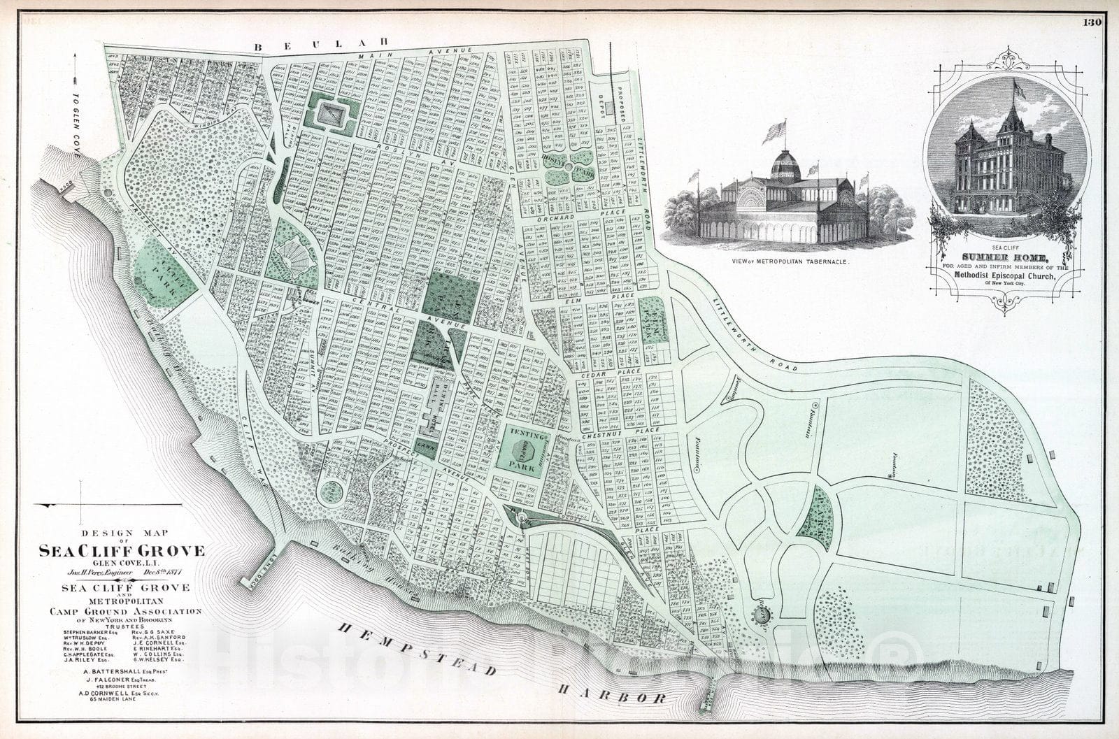 Historic Map : 1873 Design Map of Sea Cliff Grove, Glen Cove in Oyster Bay. Long Island. - Vintage Wall Art