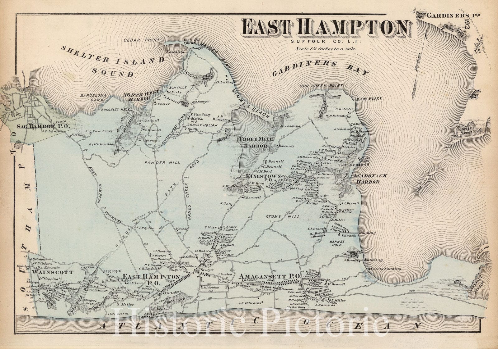 Historic Map : 1873 Greenport, Town of Southold, Suffolk Co. Long Island. - Vintage Wall Art