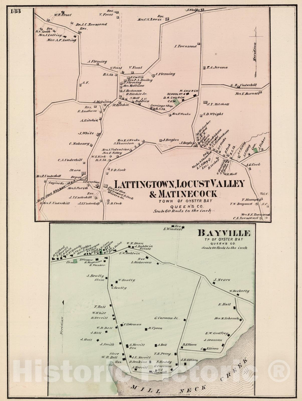 1873 Lattingtown, Locust Valle, Matinecock, Bayville, in Oyster Bay. Long Island.
