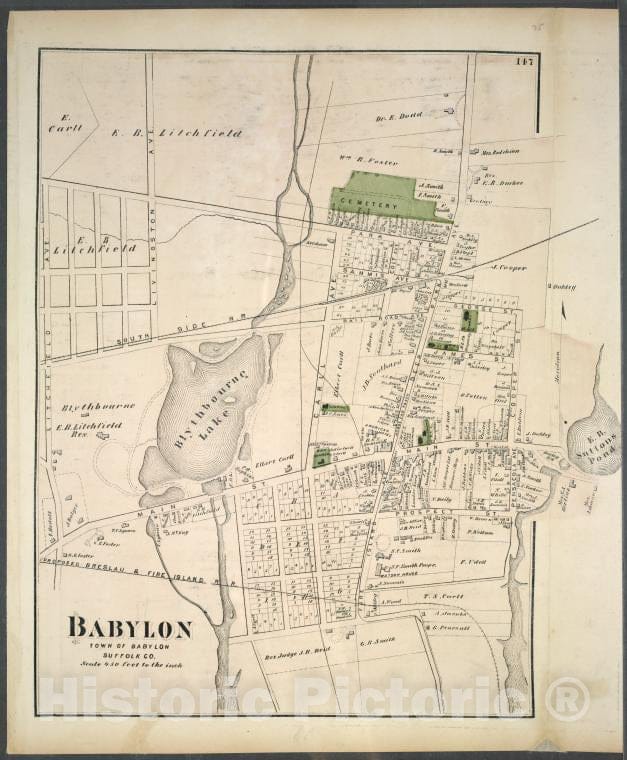 Historic Map - 1873 Long Island, New York, (N.Y.), Babylon, Town Of Babylon, Suffolk Co. - Vintage Wall Art