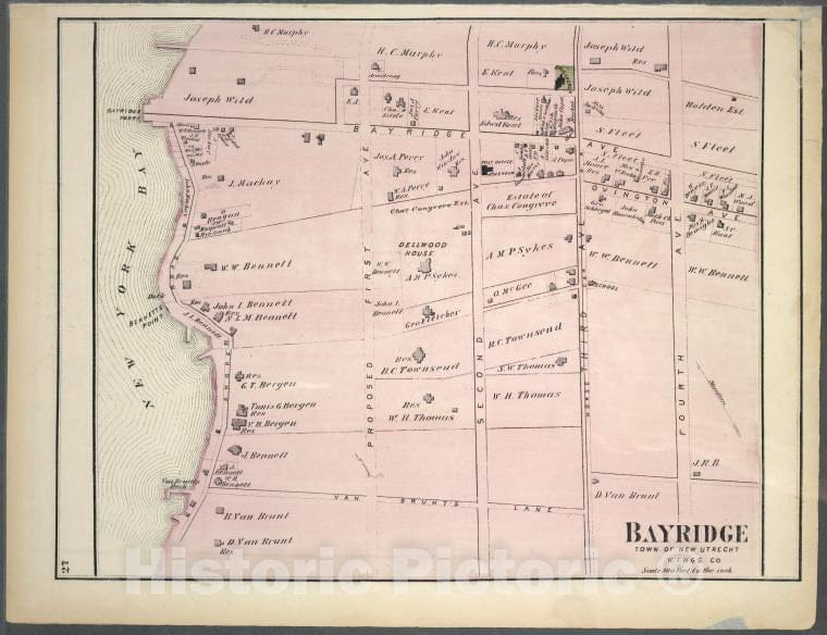 Historic Map - 1873 Long Island, New York, (N.Y.), Bayridge. Town Of New Utrecht, Kings Co.