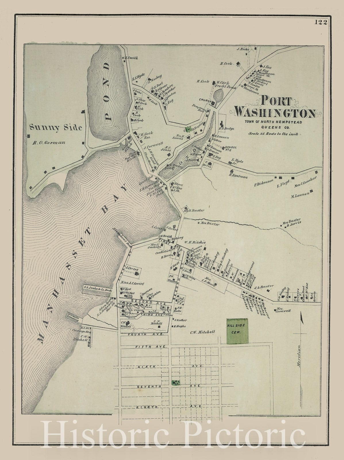 Historic Map - 1873 Long Island, New York, (N.Y.), Port Washington, Town Of Hempstead, Queens Co.