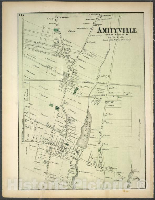 • .Historic Map - 1873 Long Island, New York.(N.Y.), Amityville, Town Of Huntington. - Vintage Wall Art