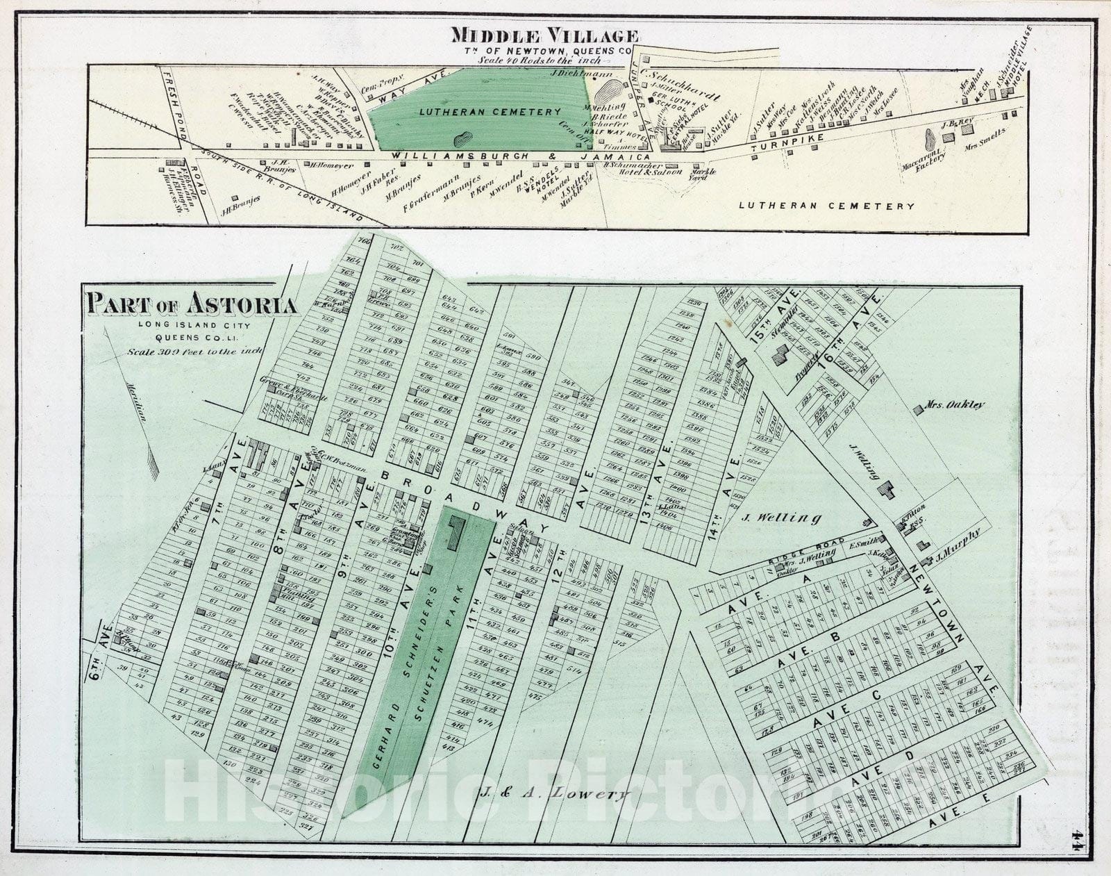 1873 Middle Village in Newtown. Astoria in Long Island City. Long Island.