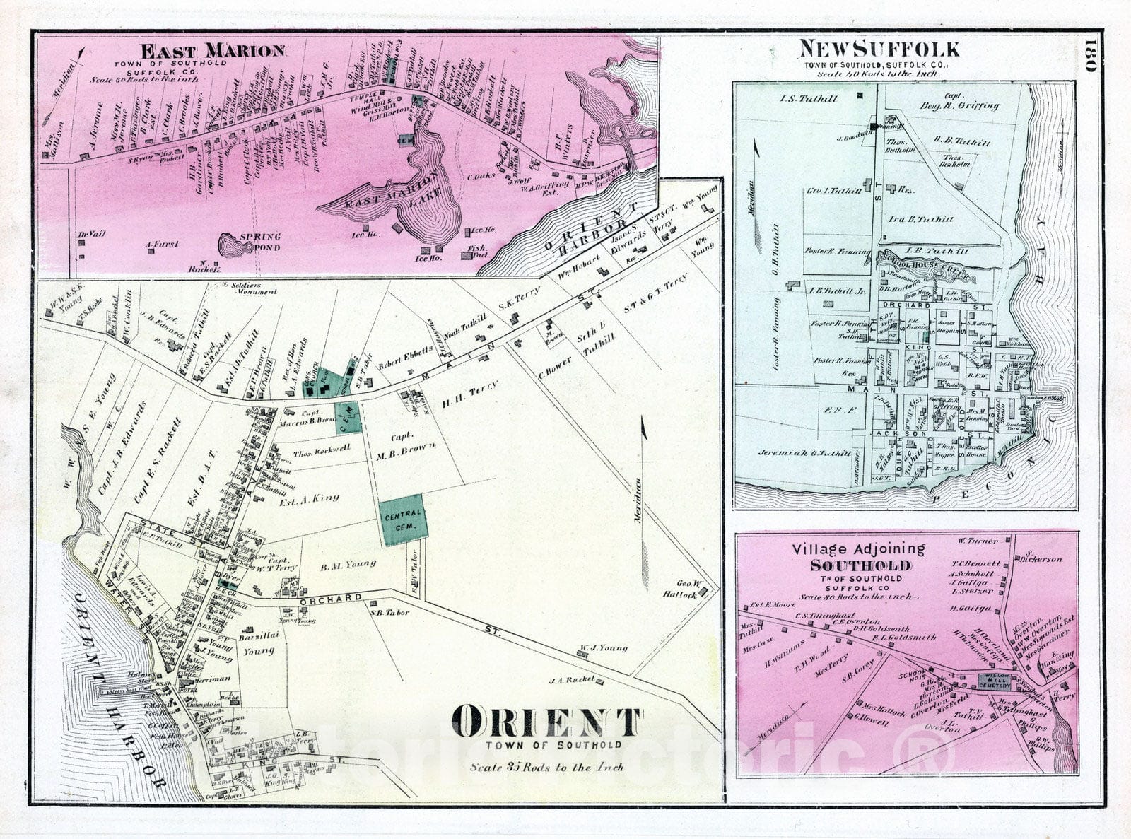 Historic Map : 1873 Orient, East Marion, New Suffolk, Village Adjoining Southold, in Southold. Long Island. - Vintage Wall Art