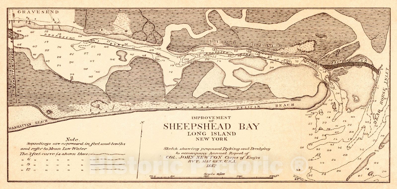 Historic Map : 1882 Improvement of Sheepshead Bay, Long Island, New York : Vintage Wall Art