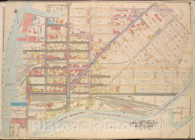 Historic Map - 1903 Queens County, New York (N.Y.), Queens, Long Island City Ward One (Old Ward One); Division, Vernon, 12Th, Ely, Jackson, Thomson, Nott, Creek - Vintage Wall Art