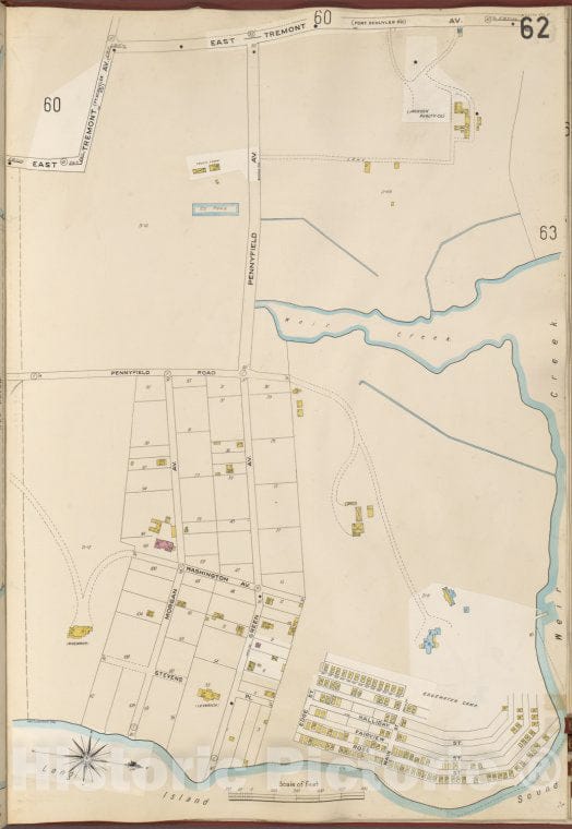 Historic Map - 1905 Bronx, New York (N.Y.), V. A, Plate No. 62 [East Tremont Ave, Weir Creek, Long Island Sound, Morgan Ave.]