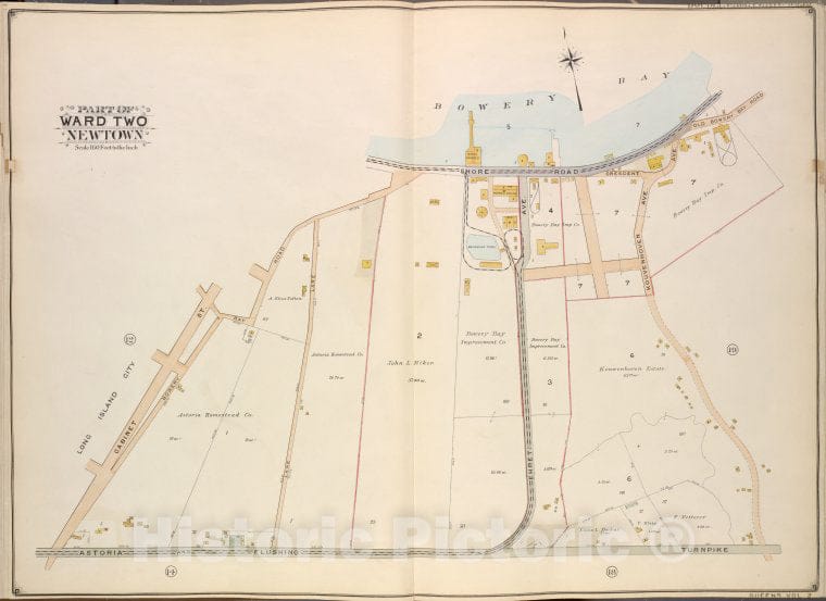 Historic Map - 1908 Queens (New York, N.Y.), Long Island City, Cabinet, Bowery Bay, Shore Road; Old Bowery Bay Road, Kouvenhoven, Astoria And Flushing Turnpike, Vintage Wall Art