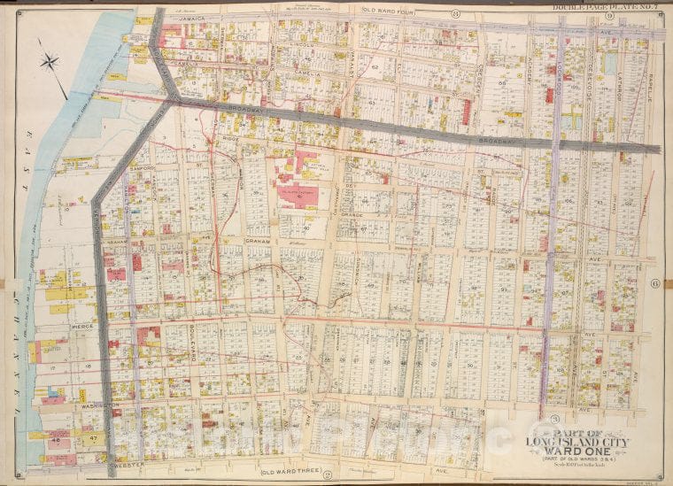Historic Map - 1908 Queens, Vol. 2, Double Page No. 7; Part Of Long Island City Ward One (Part Of Old Wards 3 & 4)