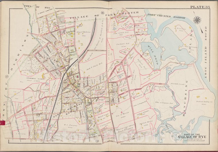 Historic Map - 1910 Westchester County, New York (N.Y.) V. 1, Plate No. 35 [Rye, Village Of Port Chester, Long Island Sound, Apawamis, North, Harrison