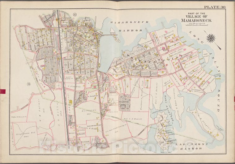 Historic Map - 1910 Westchester County, New York (N.Y.), V. 1, Plate No. 30 [Mamaroneck Harbor, Long Island Sound, Larchmont Harbor, Weaver St, Rockland Ave.]